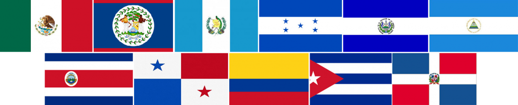 México, Belice, Guatemala, Honduras, El Salvador, Nicaragua, Costa Rica, Panamá, Colombia, Cuba y República Dominicana